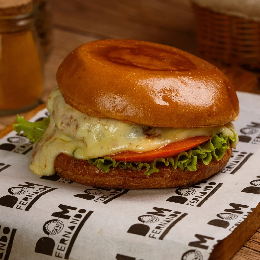 Pão de hamburguer, maionese DF, filé de frango empanado panko, queijo muçarela, bacon, alface e tomate.